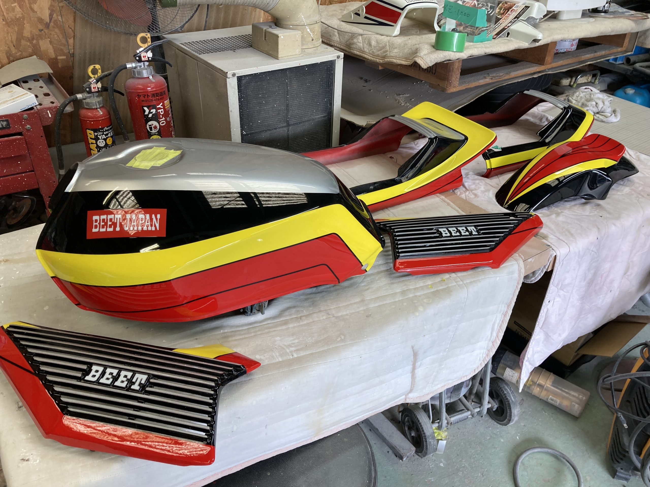 今まではこういったカスタムペイントを大々的に宣伝して施工することは避けていたのですが(エアブラシ塗装を行える塗装屋が少ないため注文が殺到するのを懸念していました)、弟子の技術が上がってより早く仕上げることが可能になったため、この度宣伝させていただくことになりました。デザインはお任せでも可能。また、デザインを決めて持ってきていただくとその通りに施工することも可能です。カスタムペイントのご依頼、快くお待ちしております。