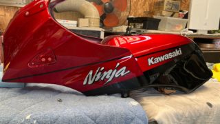 未分類 GPZカウル・タンク塗装 今回ご依頼頂いたのはこちらのGPZ。写真ではわかりにくいのですが、使用した色はキャンディーレッドと黒。ステッカーは自作で作り塗装しました。 2023.05.18 未分類